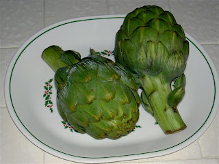 The other day I came across a four-pack of gigantic Cynara cardunculous buds while shopping at Costco. Whether it was their low price, or merely a subconscious urge to fulfill my fiber quotient by eating thistles, I put them in the cart and took them home.